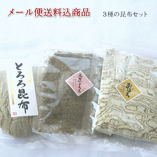 【四十物昆布】昆布3種味比べセット白とろろ/黒とろろ/おぼろ昆布《メール便発送商品》